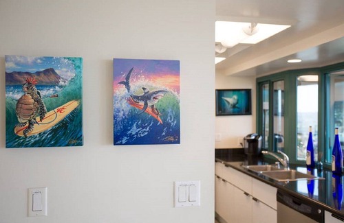 Watch the backdrop throughout the day like an ever-changing painting. Then, in addition to the Gallery of spectacular panoramic views, you will also encounter a Gallery of Hawaiian local Artists' works that further stimulate the senses; Kim Taylor Reece, Gary Palm, Thor, etc. You'll find it easy to make this your 'home away from home' at this spacious condominium with stylish, showroom designs.
