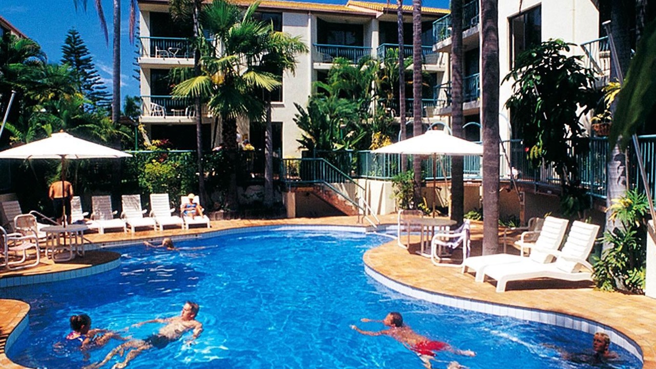 Just 50 metres from the popular Burleigh Beach, Aussie Resort features a unique heated swimming pool and hot tub, built in the shape of Australia. All apartments offer a balcony.Each of the spacious, air-conditioned apartments boasts views over the tropical gardens or swimming pool. All include a kitchen with a full-size refrigerator, laundry facilities and cable TV. Free parking is provided on-site.Guests can enjoy an outdoor meal in one of the 2 BBQ areas, or play a game in the recreation room. The tour desk offers booking of theme park tickets.Gold Coast Aussie Resort is 10 minutes' walk from restaurants, clubs and shops. It is 15 minutes' drive from the world-renowned Surfers Paradise. The Dreamworld, MovieWorld and Wet ‘n’ Wild theme parks are all within 40 minutes' drive.Burleigh Heads is a great choice for travelers interested in beach walks, surfing and relaxation.