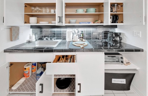 Enjoy our newly renovated Mountain View Suite complete with views of the mountain range and downtown Honolulu. This suite is 465 sq ft and features a complete kitchen and separate living area. Sleeps up to 3 guests on 1 Queen bed and 1 Full-sized sofa bed. Conveniences include high-speed wifi access, air-conditioning, a 55" flat-screen TV, a desk, complimentary bathroom toiletries, an iron & ironing board, a hair dryer, cleaning supplies, and beach towels. The kitchen is supplied with everything you need for a longer stay including a stove, toaster oven, full-sized refrigerator, microwave, coffee & coffee maker, hot kettle, and basic cookware, tableware, and seasoning. A coin-operated laundromat and swimming pool with jacuzzi are available downstairs. Parking is available at an additional fee. Housekeeping is done at check-out, but can be requested during your stay at an additional fee. Please note that a daily amenity fee applies which covers basic amenities like wifi, kitchen supplies, bathroom toiletries, and beach/pool towels.