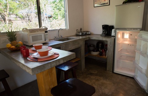 The design and architecture of CUBOS DEL MAR are very specific and different from the usual costa rican houses. Fully equipped with AC and all cooking materials, los CUBOS are made of 2 independent bungalows available for 2 to 3 persons each.