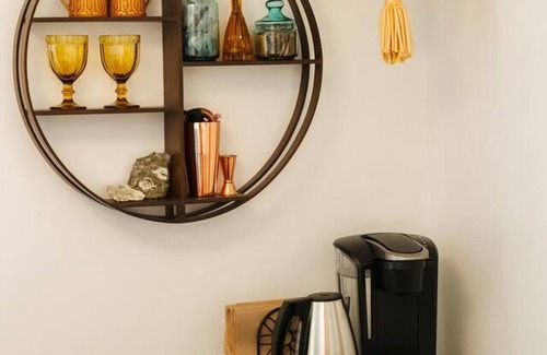 As you step inside, you’ll find a bright, inviting space with a comfortable bedroom, a private deck and a cozy living area. The bedroom features a plush king size bed dressed in fresh linens, perfect for restful nights. The living space has a small couch, a chair and TV creating a relaxed environment ideal for unwinding after a day of exploring. Natural plants and thoughtful decor welcome your serenity. The suite`s large deck, equipped with chairs, coffee table and stunning mountain views offers a perfect retreat for morning coffee, your yoga flow or an evening glass of wine. A Keurig coffee machine and assorted loose teas from local shop Thay Tea is on hand. There is a mini fridge and microwave but please note there is no plate/silverware offered.