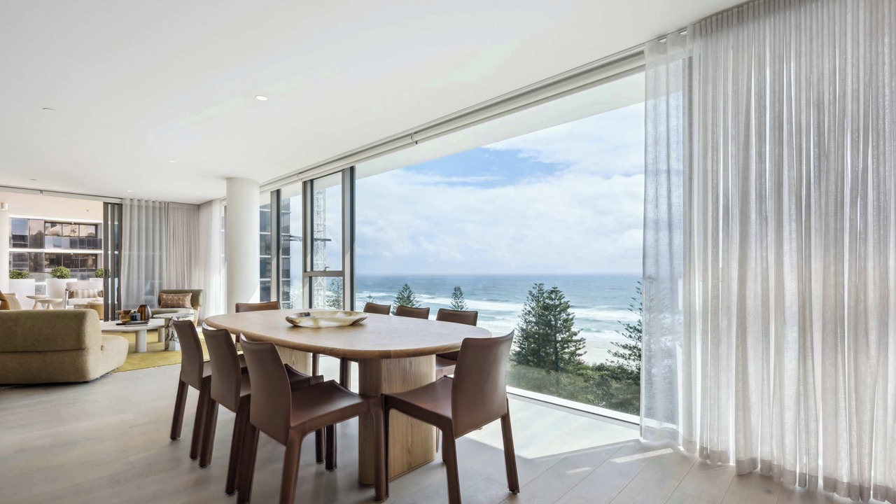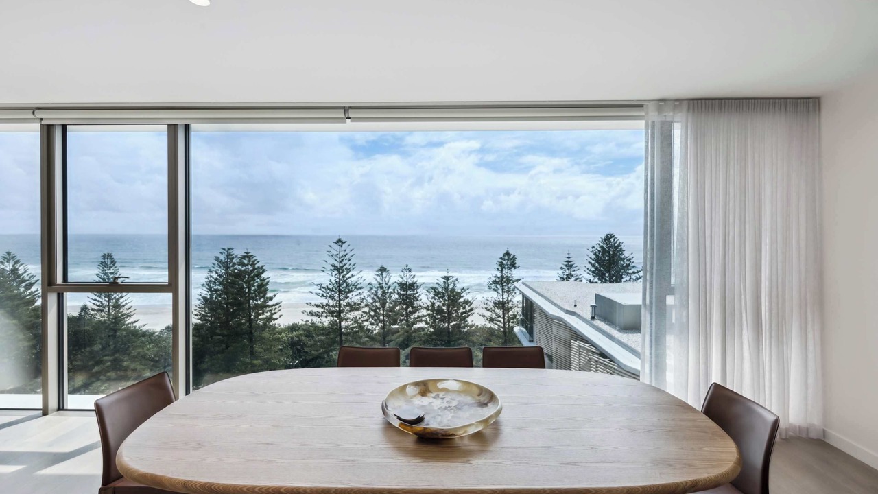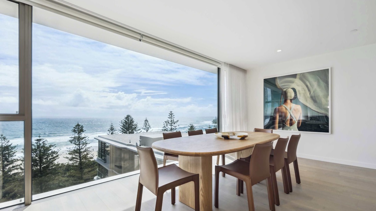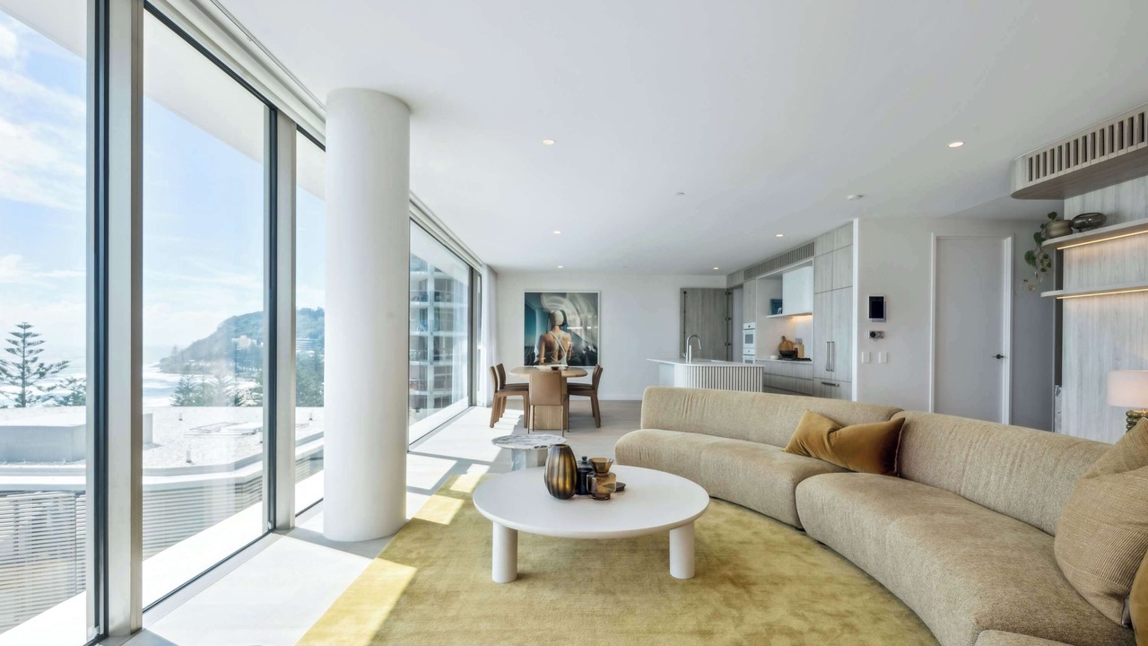 Stunning sub-penthouse, panoramic ocean views, high end spacious luxury in a million dollar location. Discover unparalleled luxury in this stunning sub-penthouse in Burleigh, Gold Coast. Beautifully styled with pops of artistic flair and unique pieces, this spacious residence offers breath taking ocean views from every angle. Featuring high-end finishes, open-plan living, and expansive glass windows that flood the space with natural light, this is the perfect blend of sophistication and comfort.