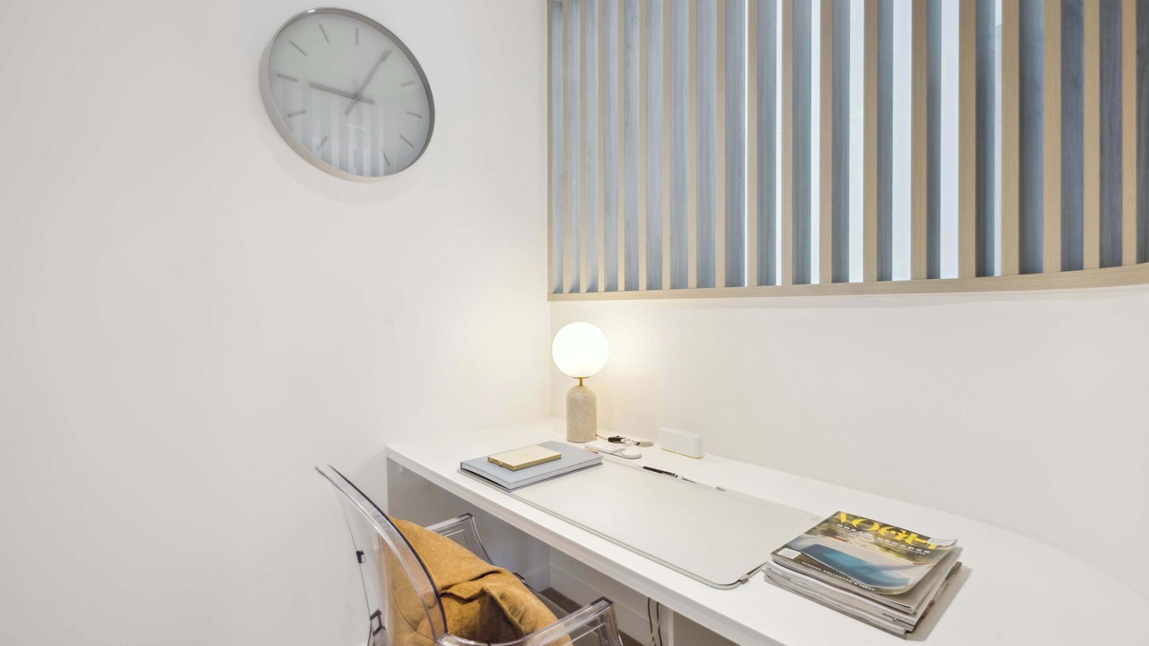 Desk, chair, lighting
