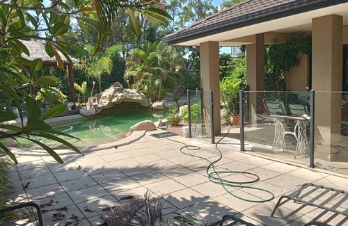 Lounge in or around the pool or relax under the cave listening to the water fall in front of you. 5 minute stroll to shopping centres and restaurants, bars and buses. 5 minute walk to Oxenford Lake Fitness Circuit.
