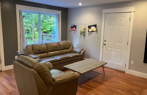 Sienna's Tree House is located just a few minutes walk from the famous North Chesterman Beach in Tofino. This cozy west cost 2 bedroom apartment is surrounded by trees making it the perfect place to relax, yet still convenient located just 4.5km from downtown Tofino. This home contains a king size bed and two extra long twin beds that makes it comfortable for adults as well as children to sleep on. A three piece bathroom. The open living space gives you plenty of space to entertain both in the living room and your own patio. Our fully equipped kitchen and barbecue gives you the freedom of cooking your own meals. We also provide coffee, tea, common spices and condiments, linen towels and bathroom essentials to make your stay as convenient as possible.