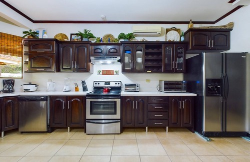Great home near the exotic Playa Conchal for up to 13 people, between the main and the guest house. The main house is a single story of 3750 sq. ft. Beautiful newly built, this colonial-style luxury vacation rental is located in the private and secure gated community of Catalina Cove. It has beautiful tropical landscaped gardens and a private and huge swimming pool.