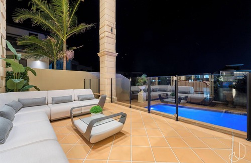 If you want a perfect, tranquil holiday in total luxury, this prestigious waterfront five-king-size bedroom Versace-style masterpiece has it all.