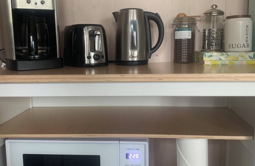 Additional information: Induction single cooktop and small convection oven.